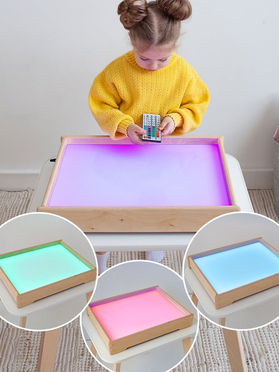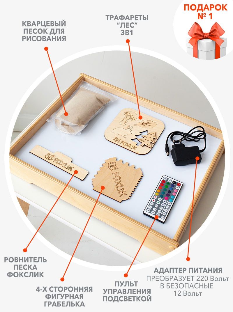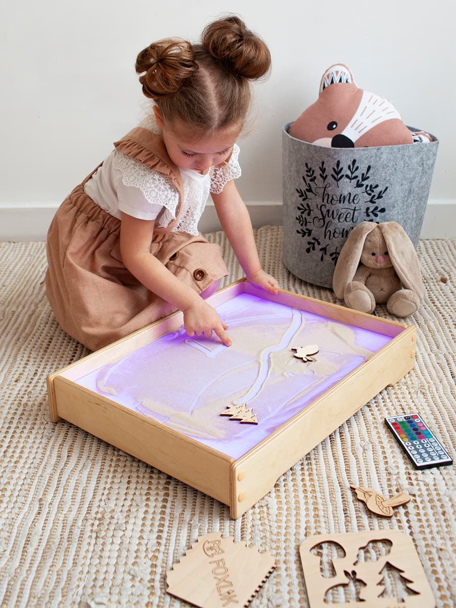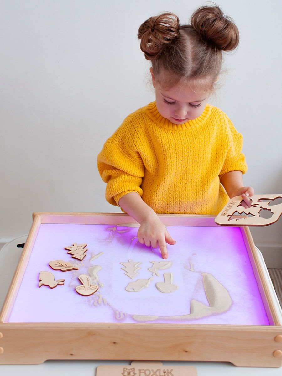 Деревянный световой планшет FOXLIK — это увлекательные игры и развитие ребёнка без экранов. Мягкая цветная подсветка помогает сосредоточиться и расслабиться, а рисование песком тренирует моторику, воображение и речь.